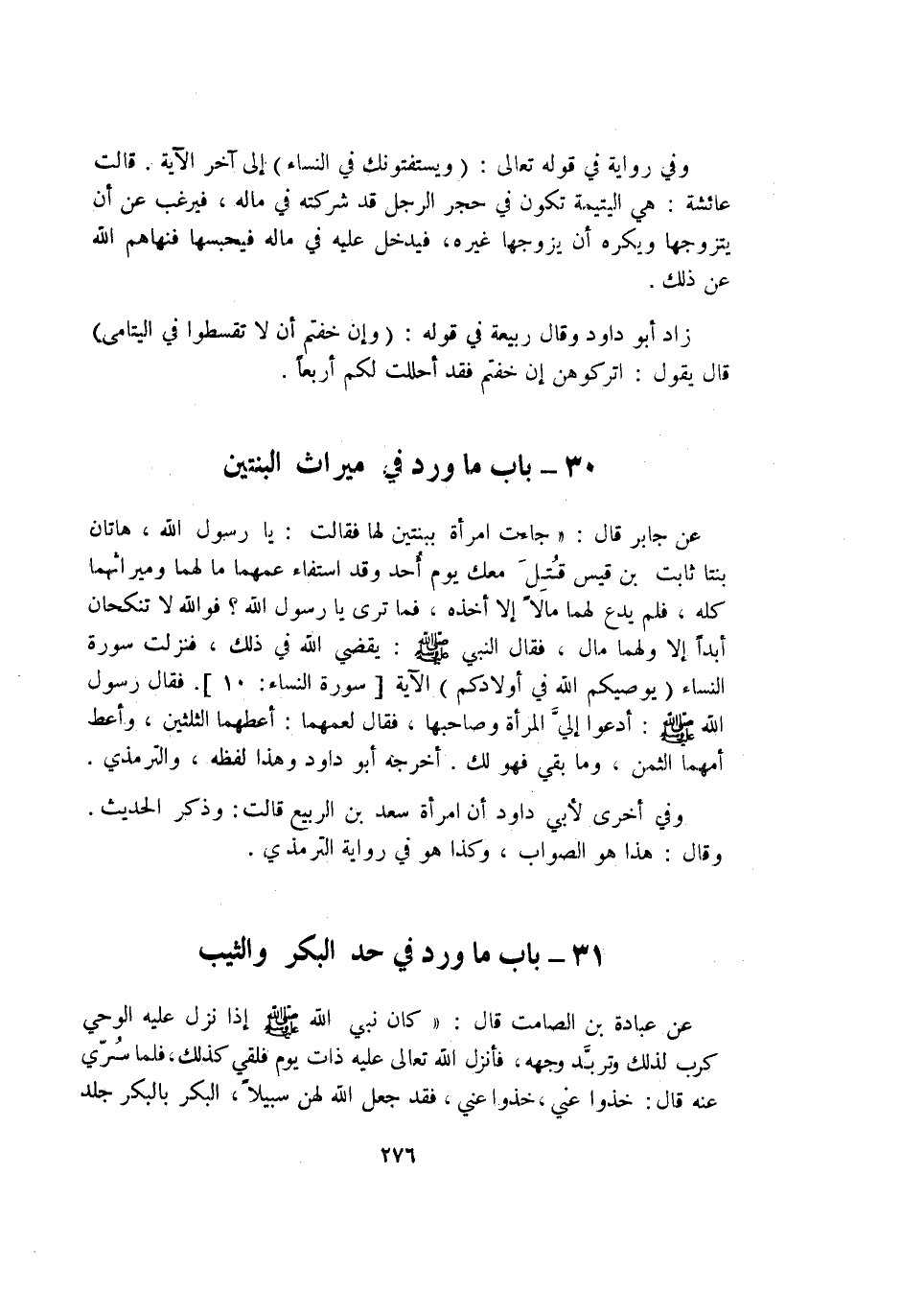 31 - بَاب مَا ورد فِي حد الْبكر وَالثَّيِّب