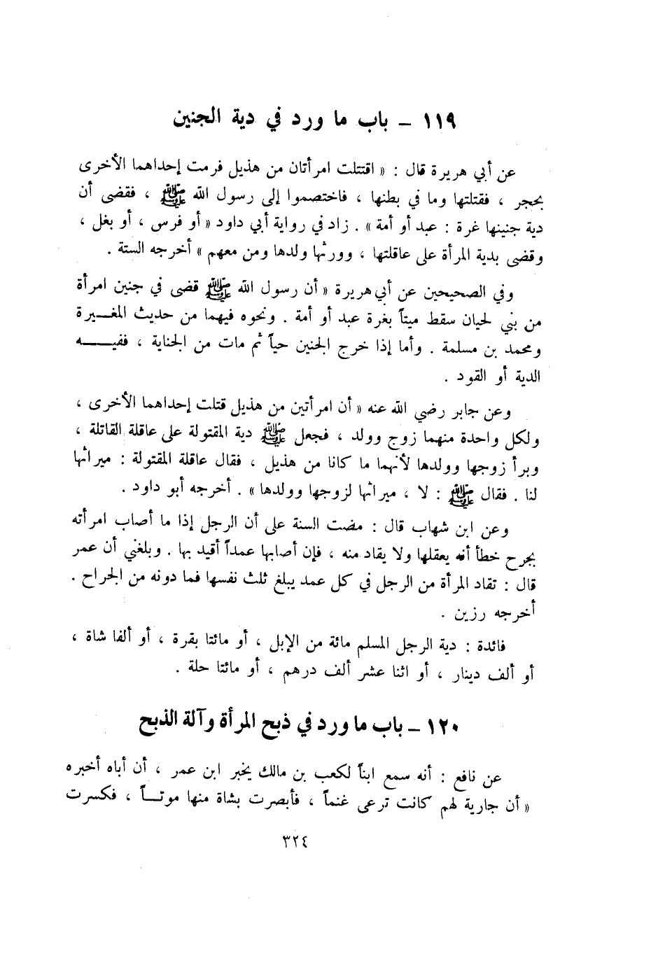 119 - بَاب مَا ورد فِي دِيَة الْجَنِين