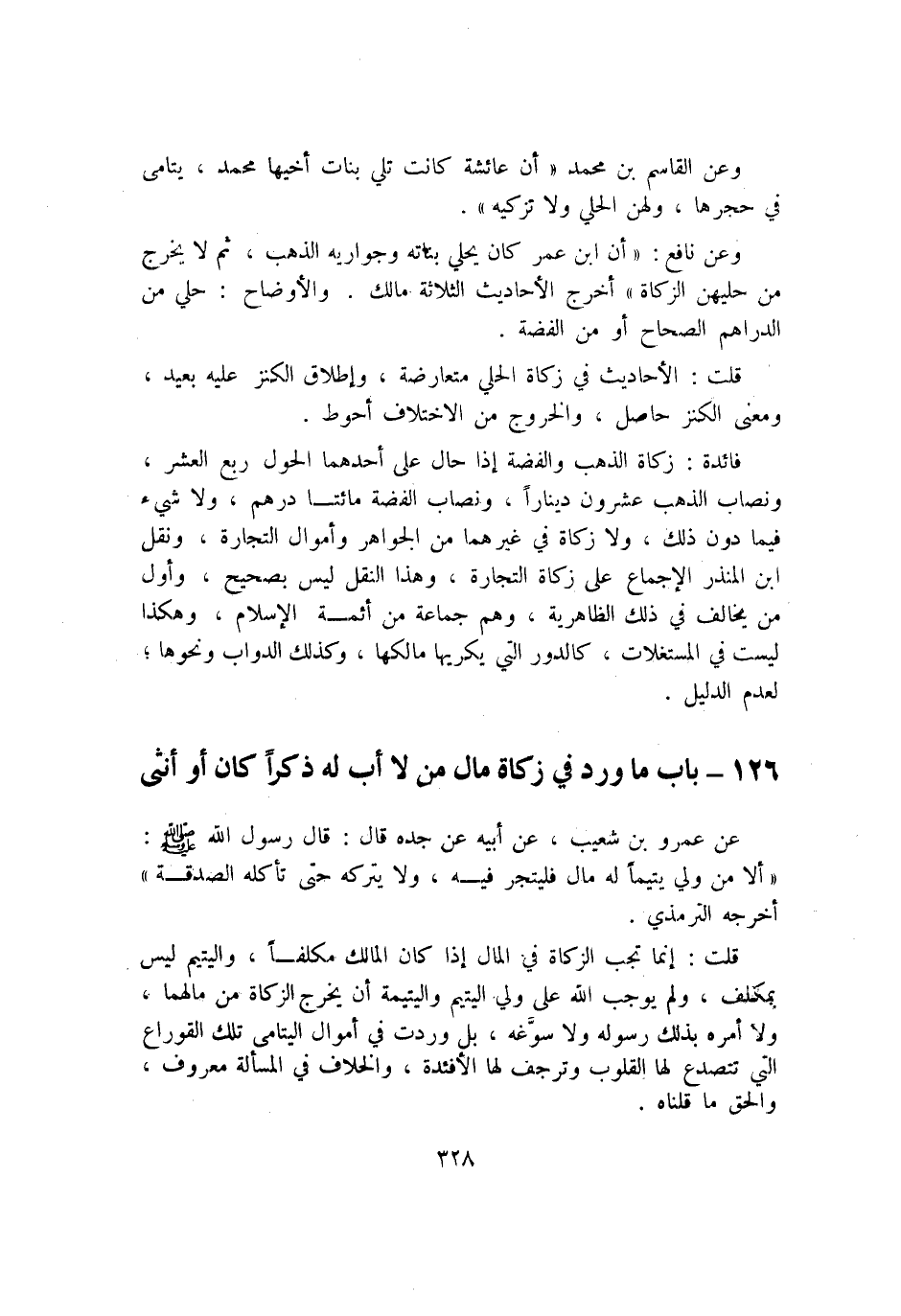 126 - بَاب مَا ورد فِي زَكَاة مَال من لَا أَب لَهُ ذكرا كَانَ أَو أُنْثَى