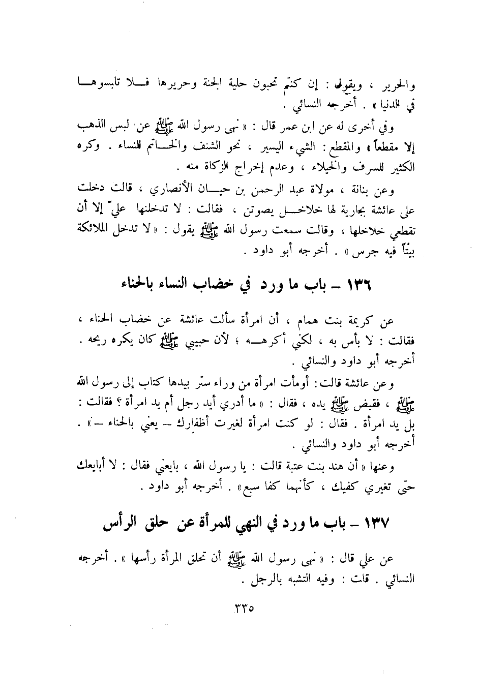 136 - بَاب مَا ورد فِي خضاب النِّسَاء بِالْحِنَّاءِ