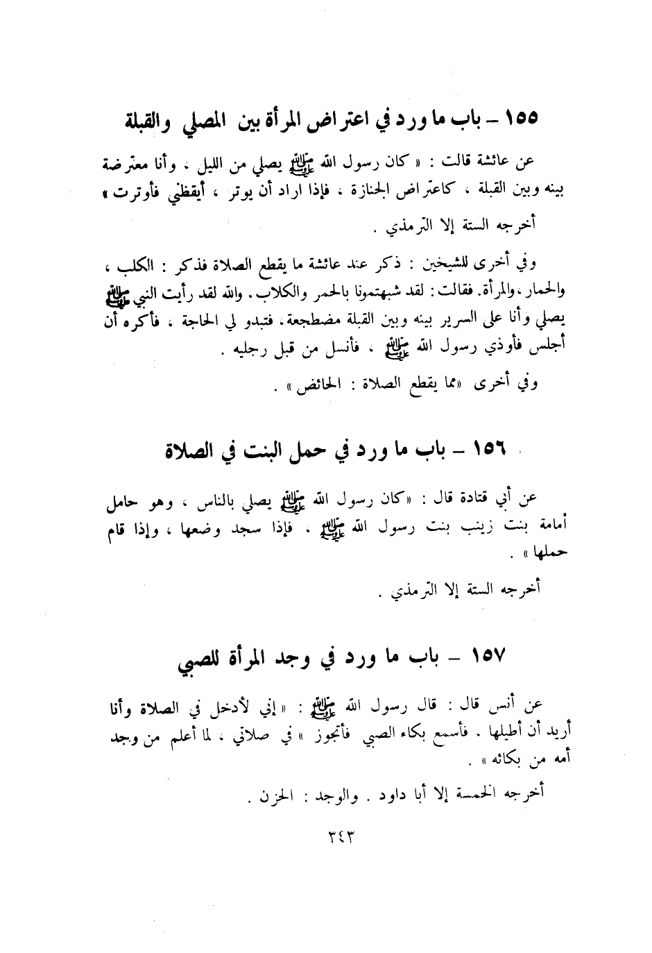 155 - بَاب مَا ورد فِي اعْتِرَاض الْمَرْأَة بَين الْمُصَلِّي والقبلة