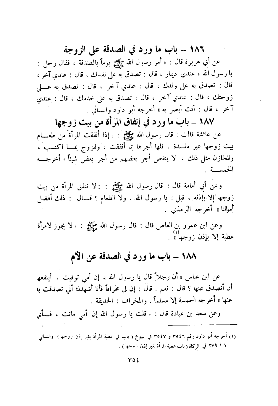 186 - بَاب مَا ورد فِي الصَّدَقَة على الزَّوْجَة