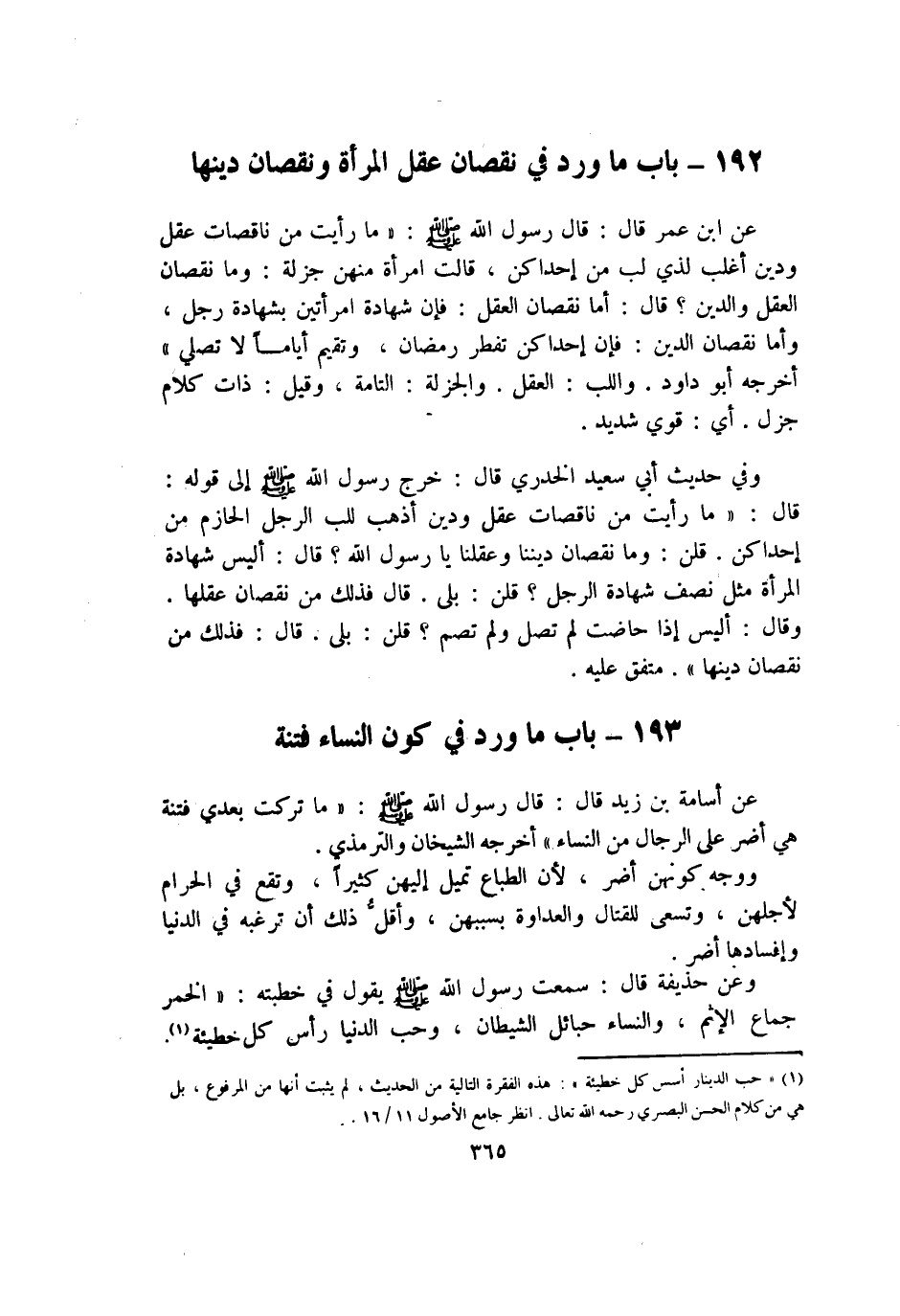 192 - بَاب مَا ورد فِي نُقْصَان عقل الْمَرْأَة ونقصان دينهَا