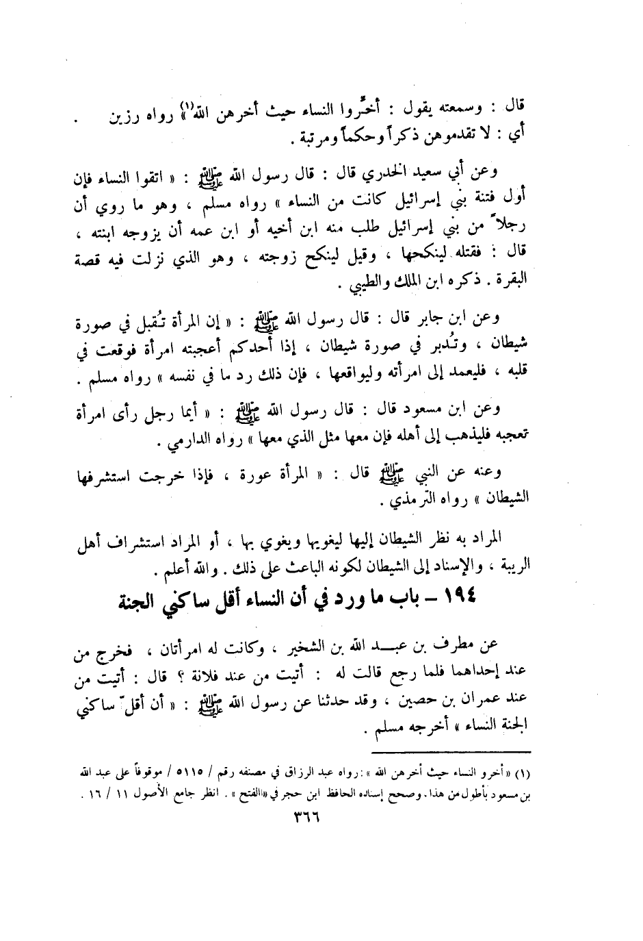 194 - بَاب مَا ورد فِي أَن النِّسَاء أقل سَاكِني الْجنَّة