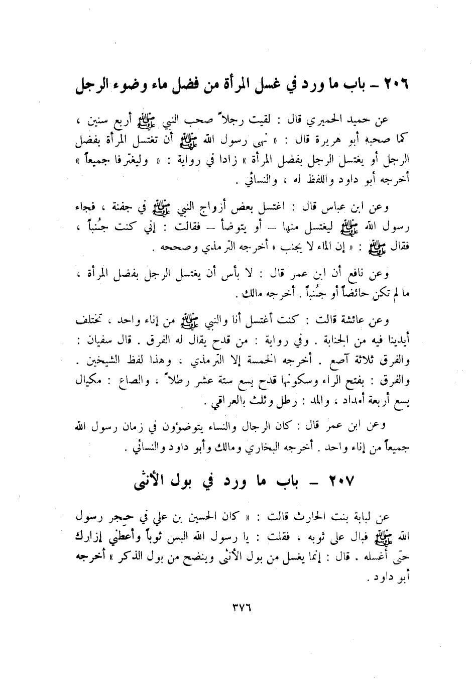 206 - بَاب مَا ورد فِي غسل الْمَرْأَة من فضل مَاء وضوء الرجل