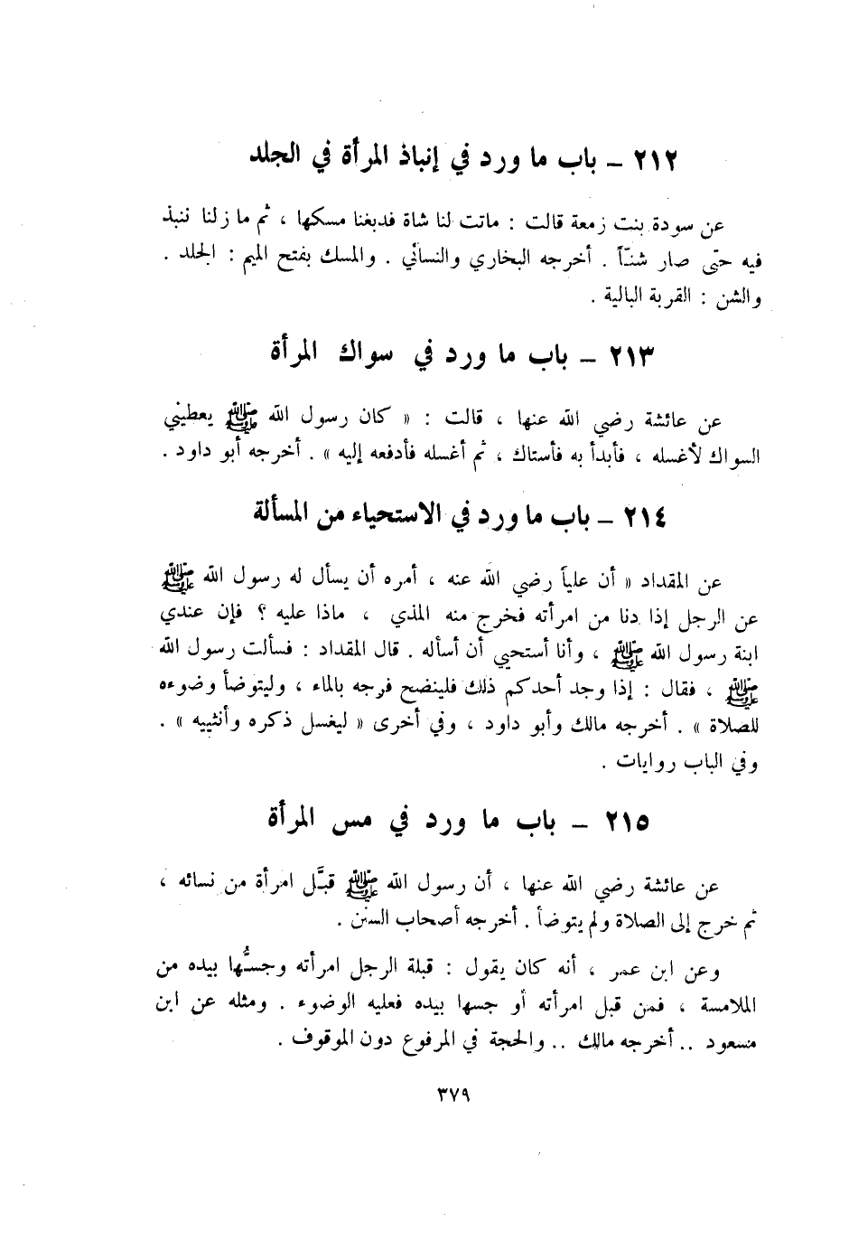 215 - بَاب مَا ورد فِي مس الْمَرْأَة