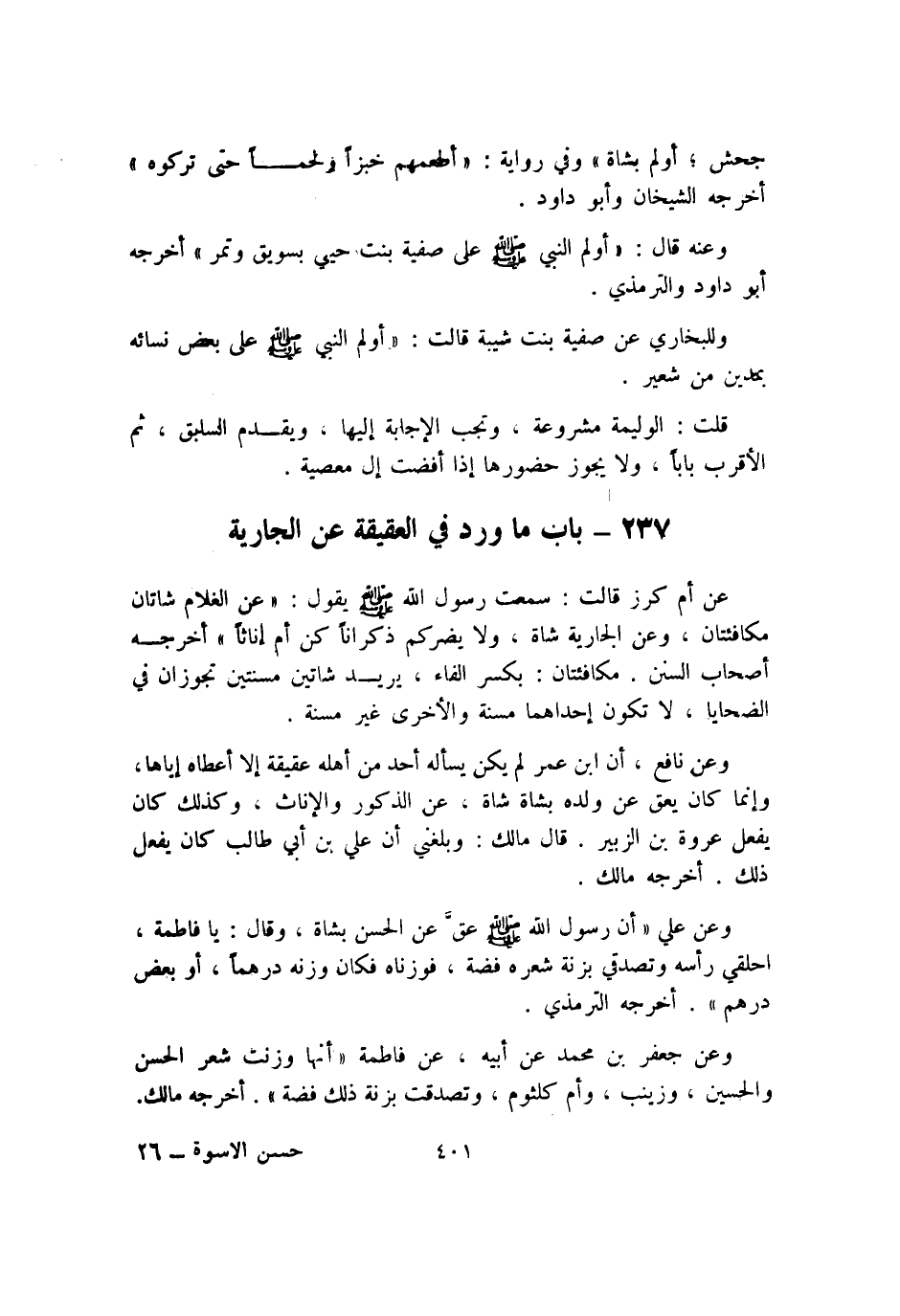 أخرجه مَالك وَعَن عَليّ أَن رَسُول الله صلى الله عَلَيْهِ وَسلم عق عَن الْحسن بِشَاة وَقَالَ يَا فَاطِمَة احلقي رَأسه وتصدقي بزنة شعره فضَّة فوزناه فَكَانَ وَزنه درهما أَو بعض دِرْهَم أخرجه التِّرْمِذِيّ