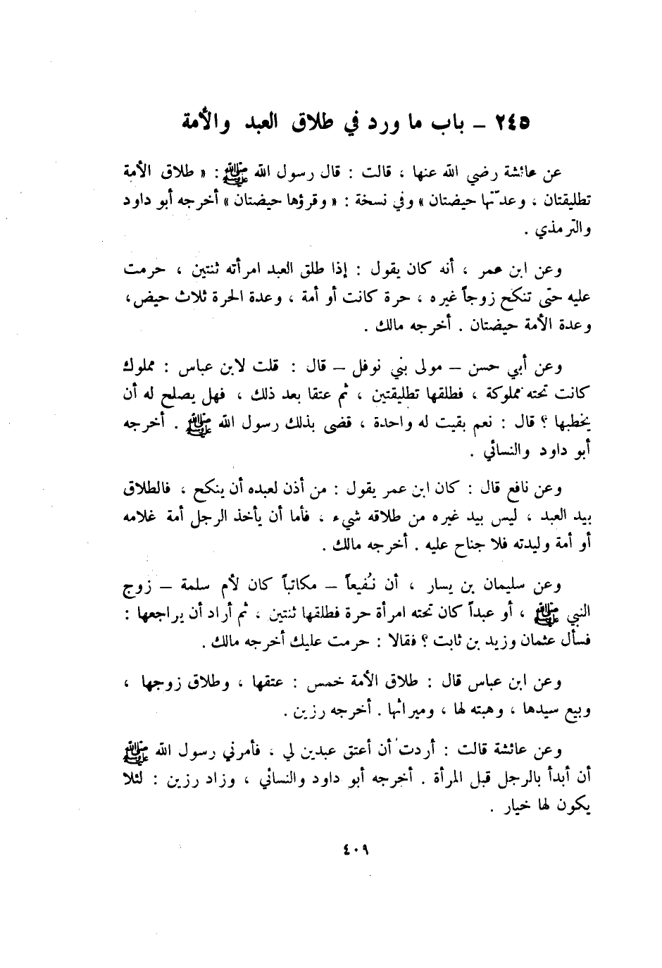 245 - بَاب مَا ورد فِي طَلَاق العَبْد وَالْأمة