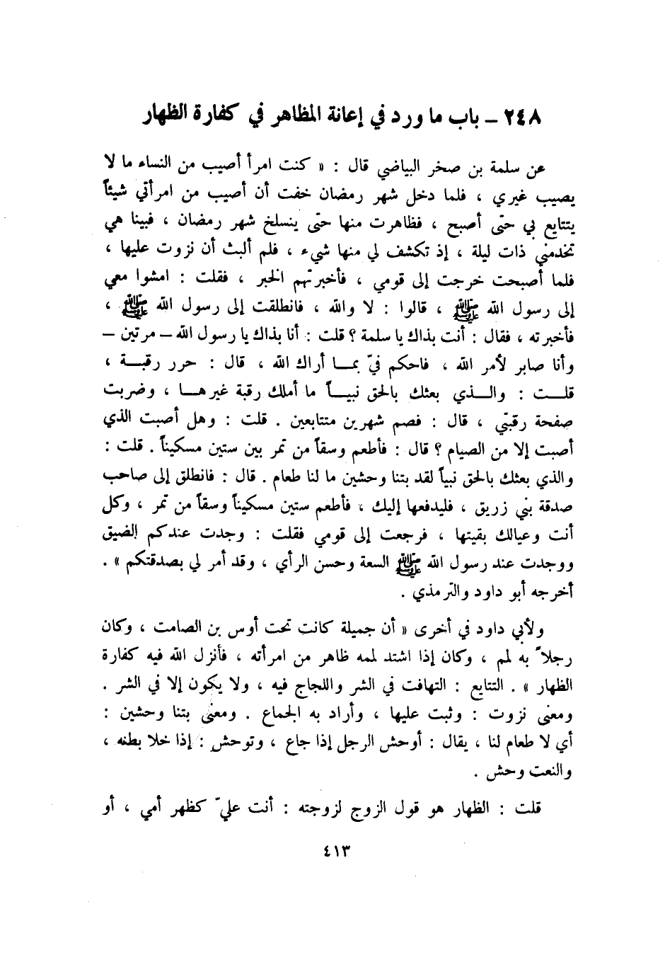 248 - بَاب مَا ورد فِي إِعَانَة الْمظَاهر فِي كَفَّارَة الظِّهَار