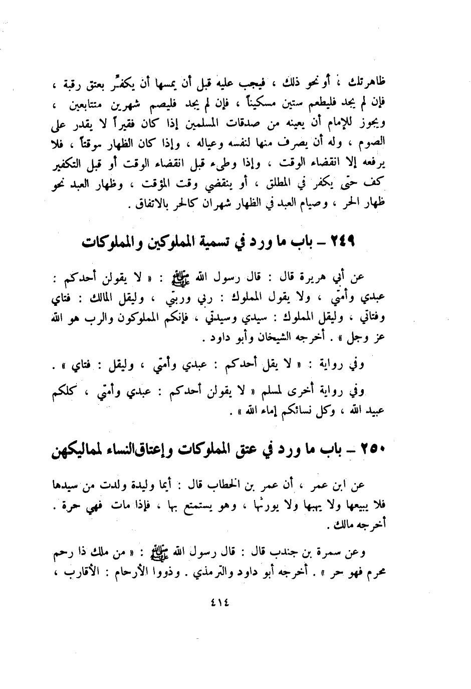 249 - بَاب مَا ورد فِي تَسْمِيَة المملوكين والمملوكات