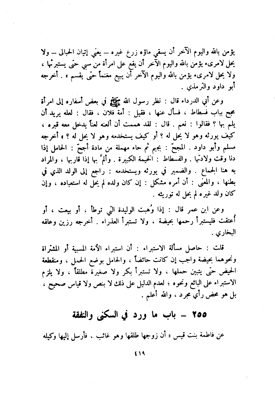 255 - بَاب مَا ورد فِي السُّكْنَى وَالنَّفقَة