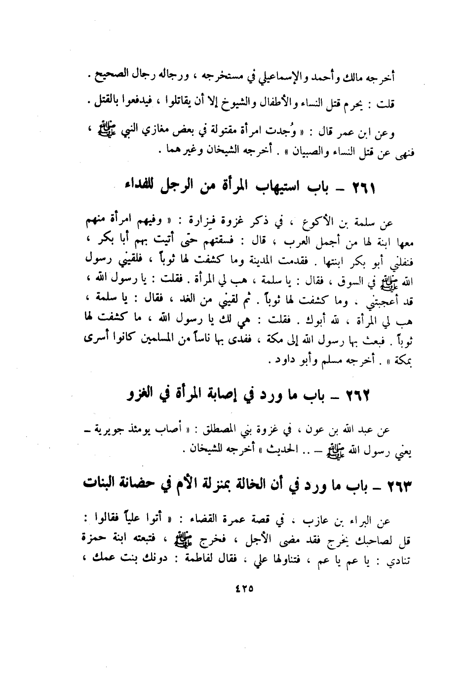 262 - بَاب مَا ورد فِي إِصَابَة الْمَرْأَة فِي الْغَزْو