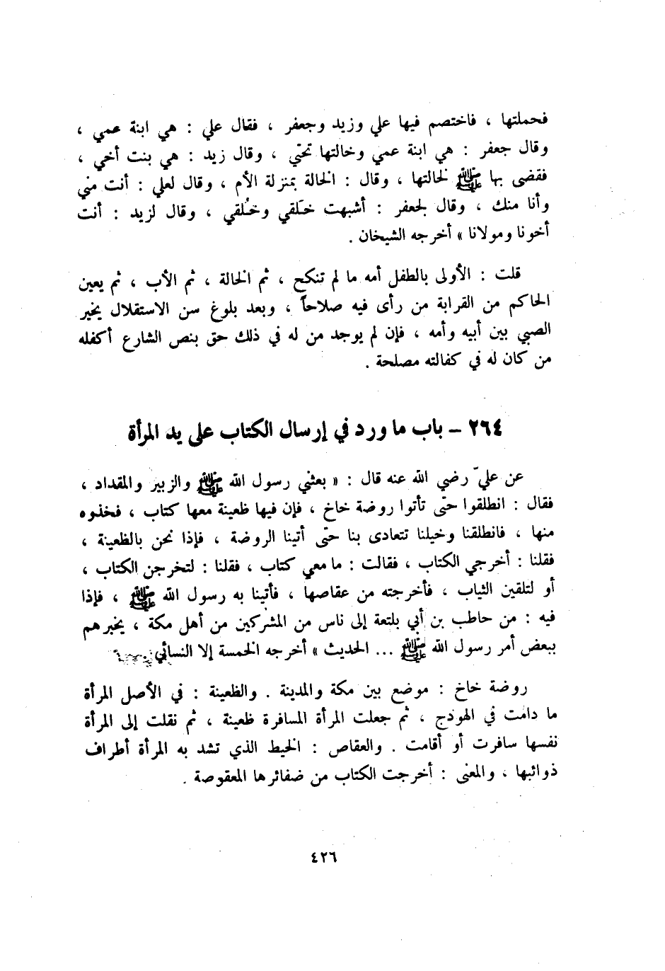 264 - بَاب مَا ورد فِي إرْسَال الْكتاب على يَد الْمَرْأَة