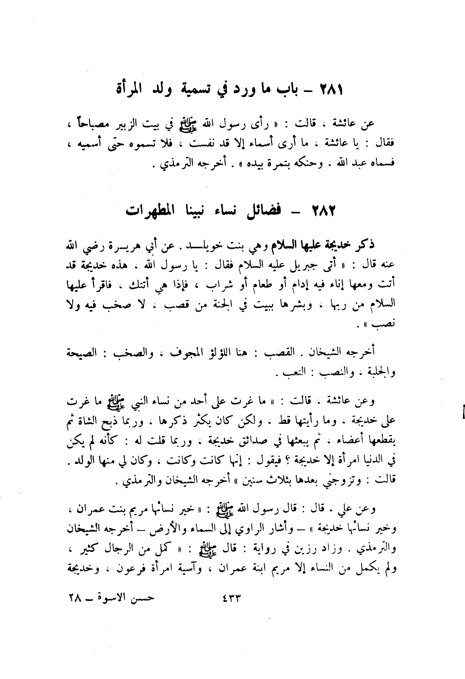 281 - بَاب مَا ورد فِي تَسْمِيَة ولد الْمَرْأَة