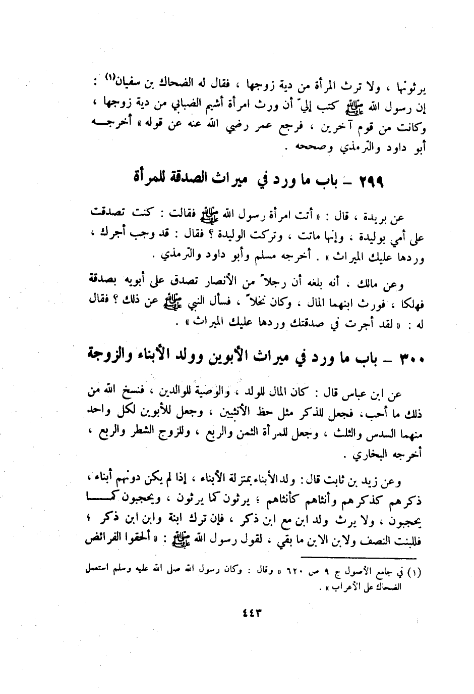 299 - بَاب مَا ورد فِي مِيرَاث الصَّدَقَة للْمَرْأَة