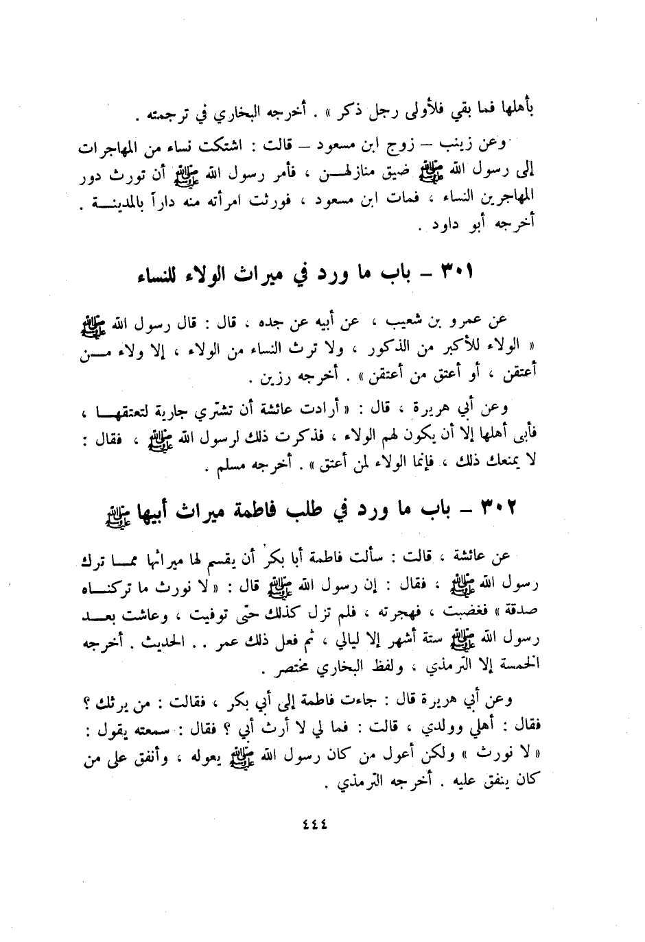 302 - بَاب مَا ورد فِي طلب فَاطِمَة مِيرَاث أَبِيهَا صلى الله عَلَيْهِ وَسلم