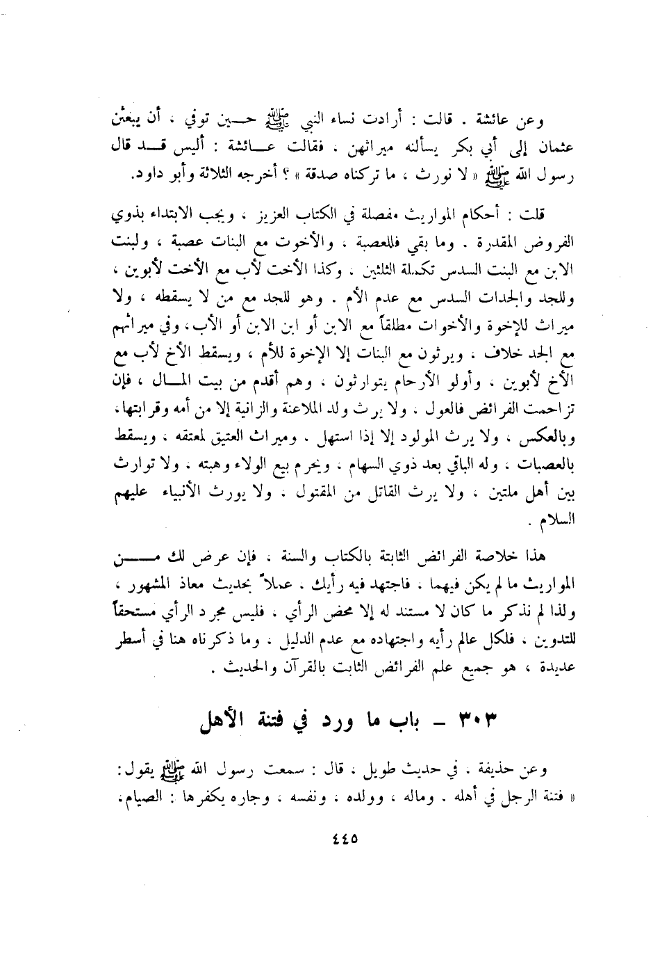 303 - بَاب مَا ورد فِي فتْنَة الْأَهْل