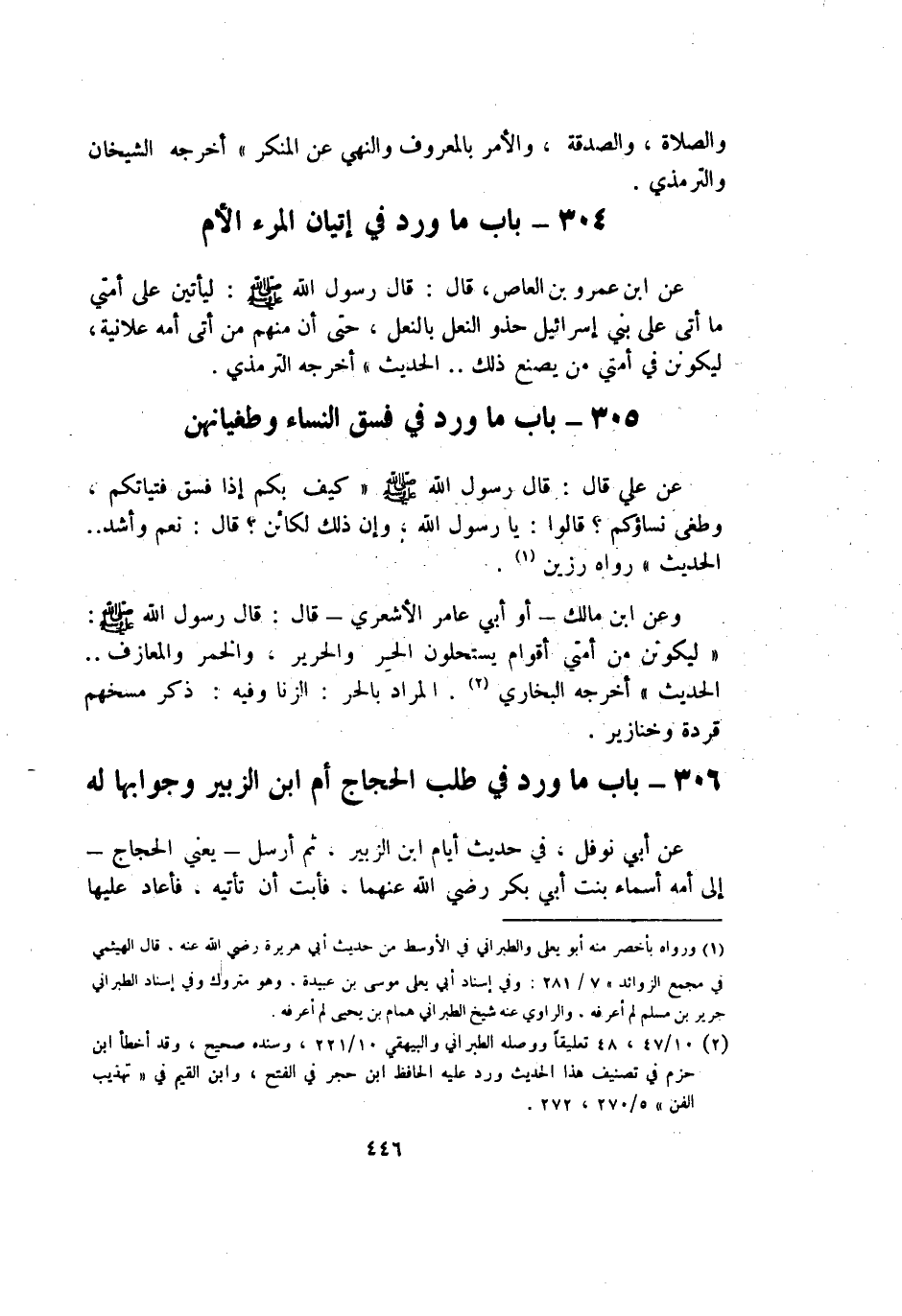 306 - بَاب مَا ورد فِي طلب الْحجَّاج أم ابْن الزبير وجوابها لَهُ