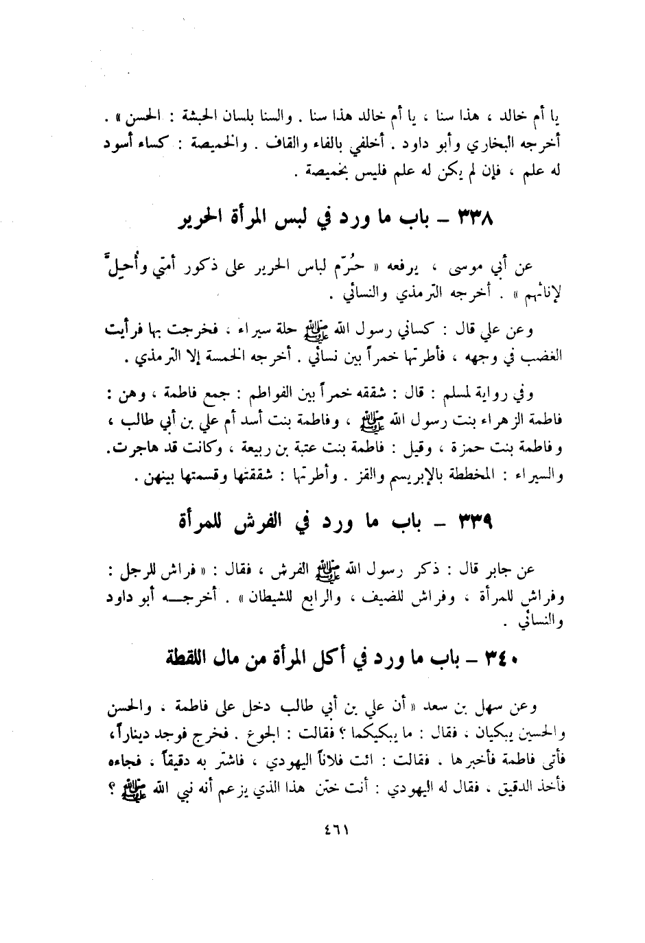 339 - بَاب مَا ورد فِي الْفرش للْمَرْأَة