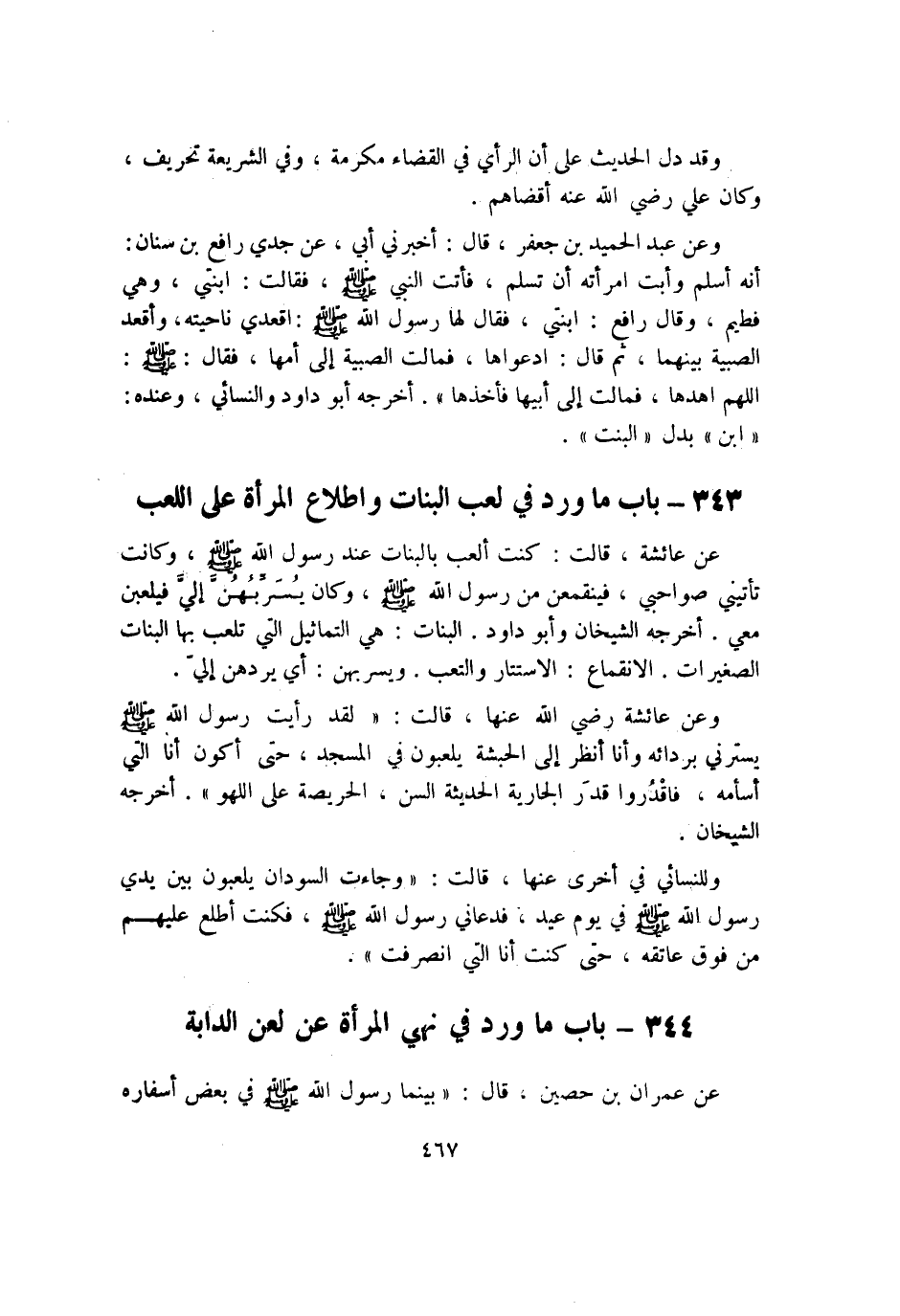 343 - بَاب مَا ورد فِي لعب الْبَنَات واطلاع الْمَرْأَة على اللّعب