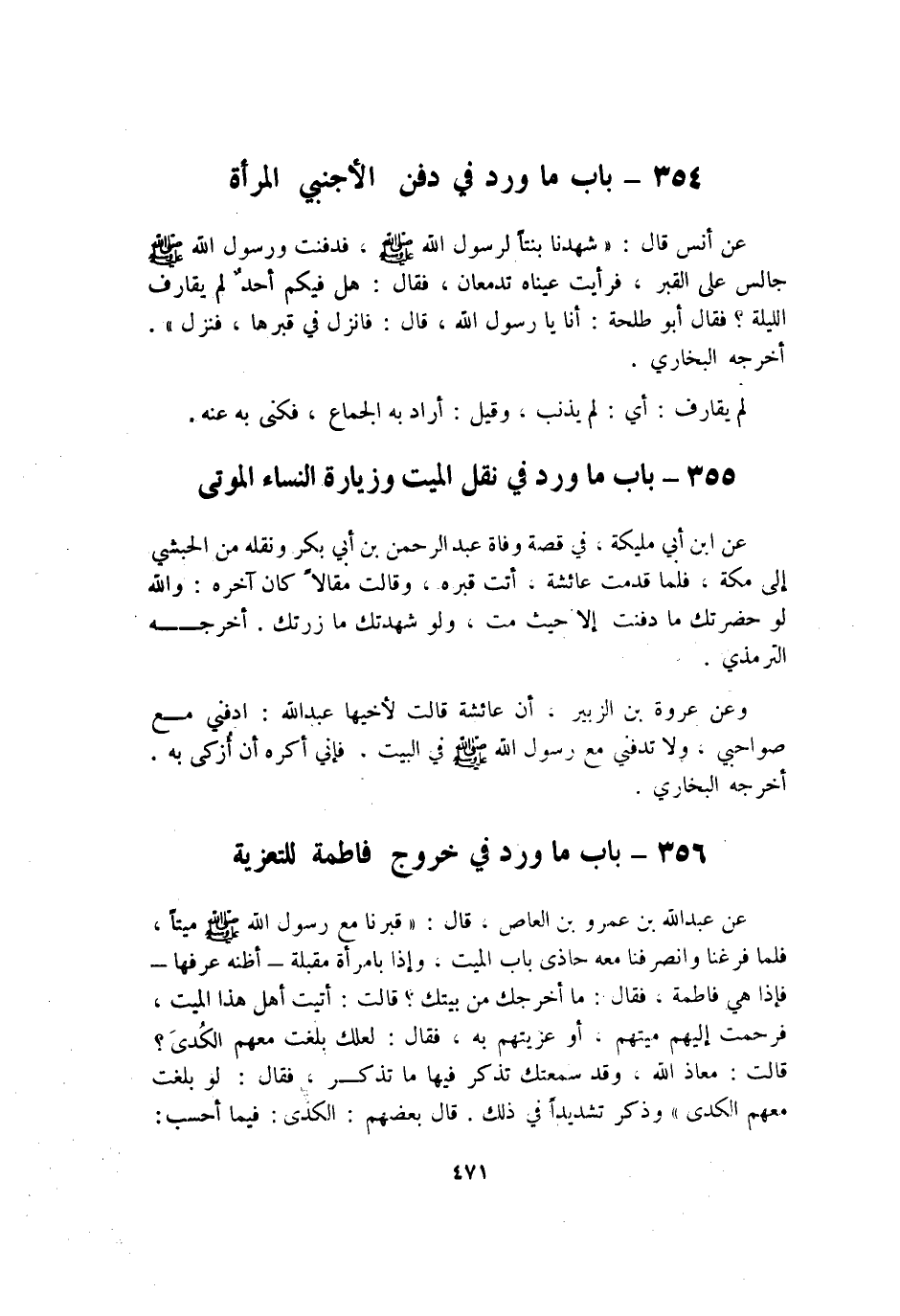 356 - بَاب مَا ورد فِي خُرُوج فَاطِمَة للتعزية