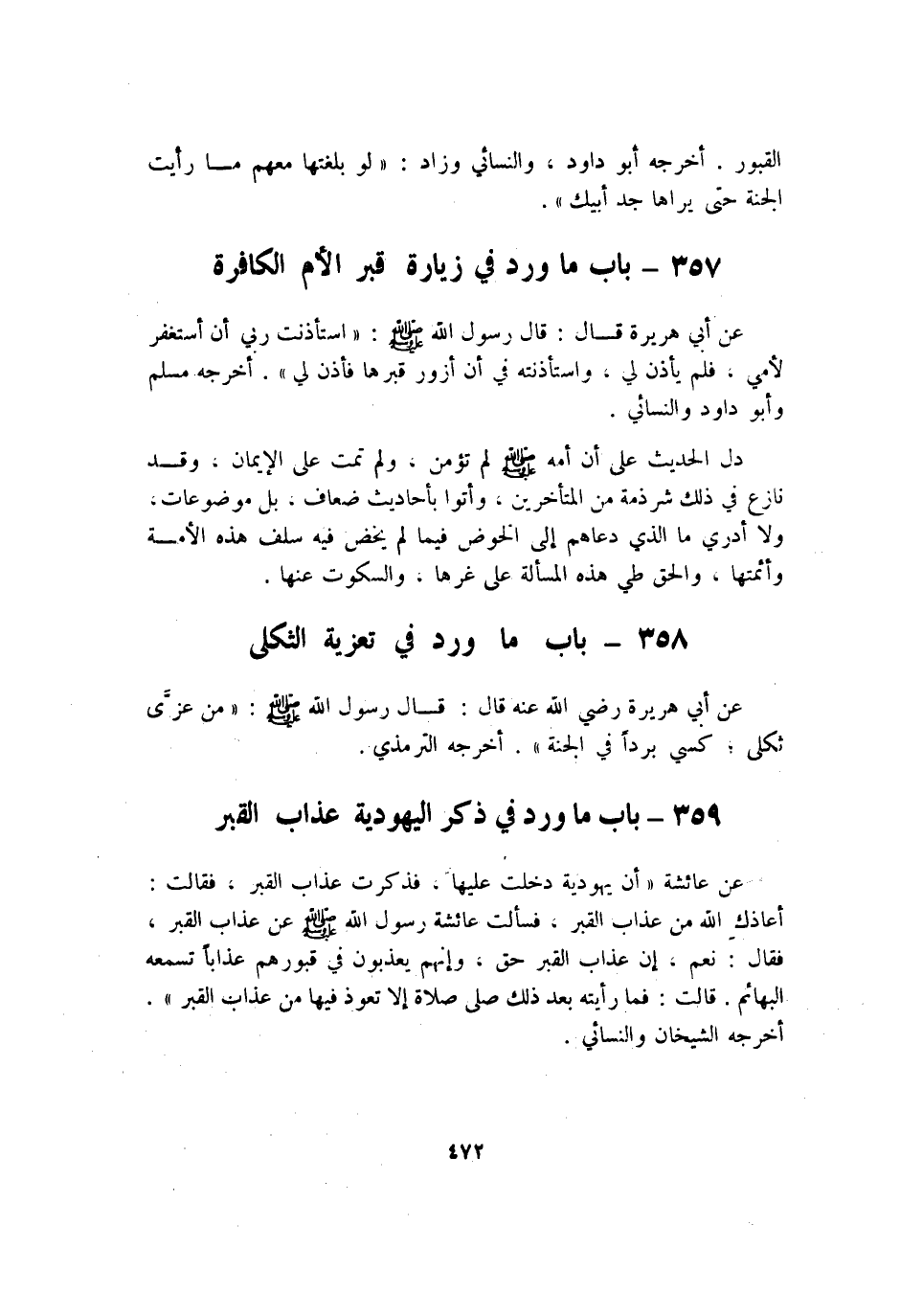 357 - بَاب مَا ورد فِي زِيَارَة قبر الْأُم الْكَافِرَة