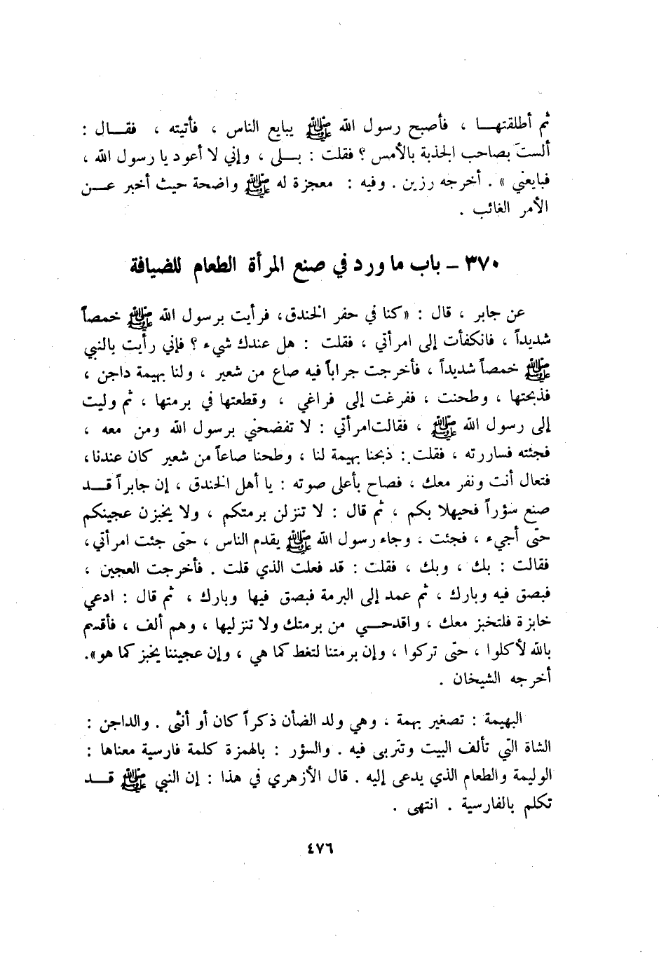 370 - بَاب مَا ورد فِي صنع الْمَرْأَة الطَّعَام للضيافة