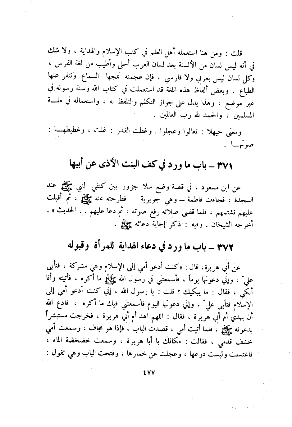372 - بَاب مَا ورد فِي دُعَاء الْهِدَايَة للْمَرْأَة وقبوله