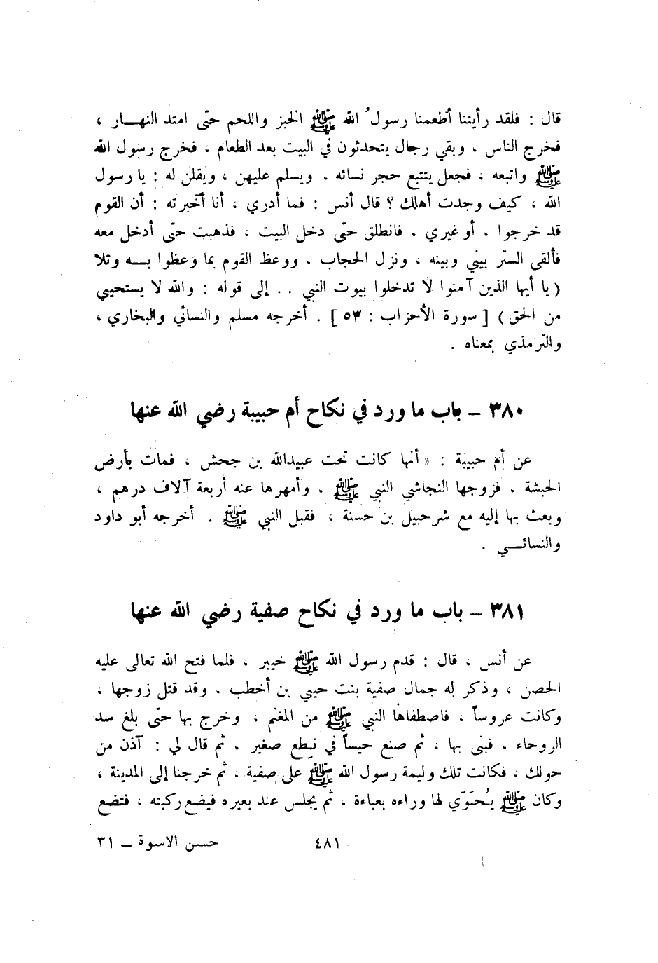 381 - بَاب مَا ورد فِي نِكَاح صَفِيَّة رَضِي الله عَنْهَا