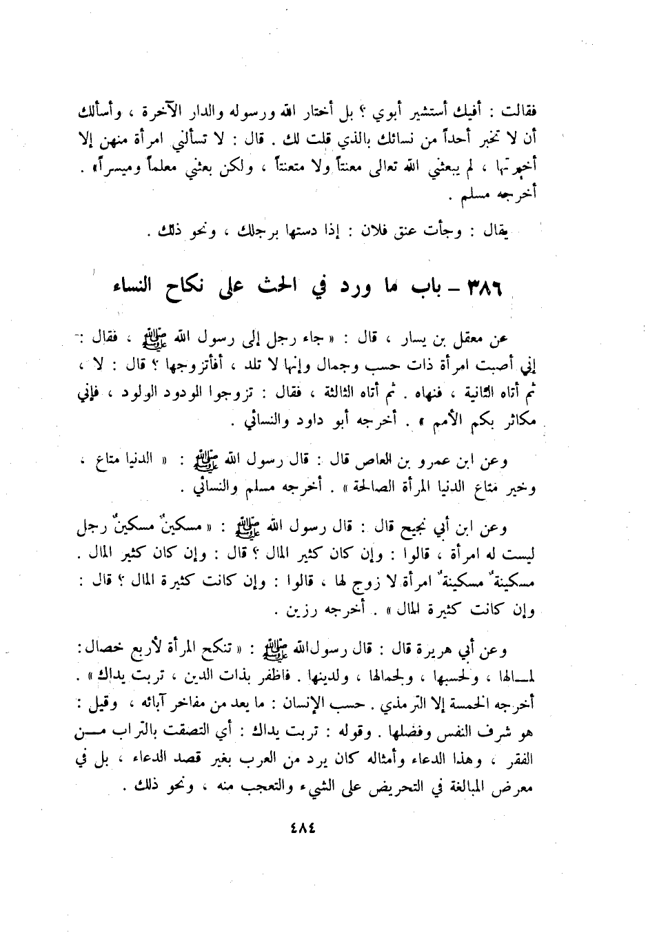 386 - بَاب مَا ورد فِي الْحَث على نِكَاح النِّسَاء
