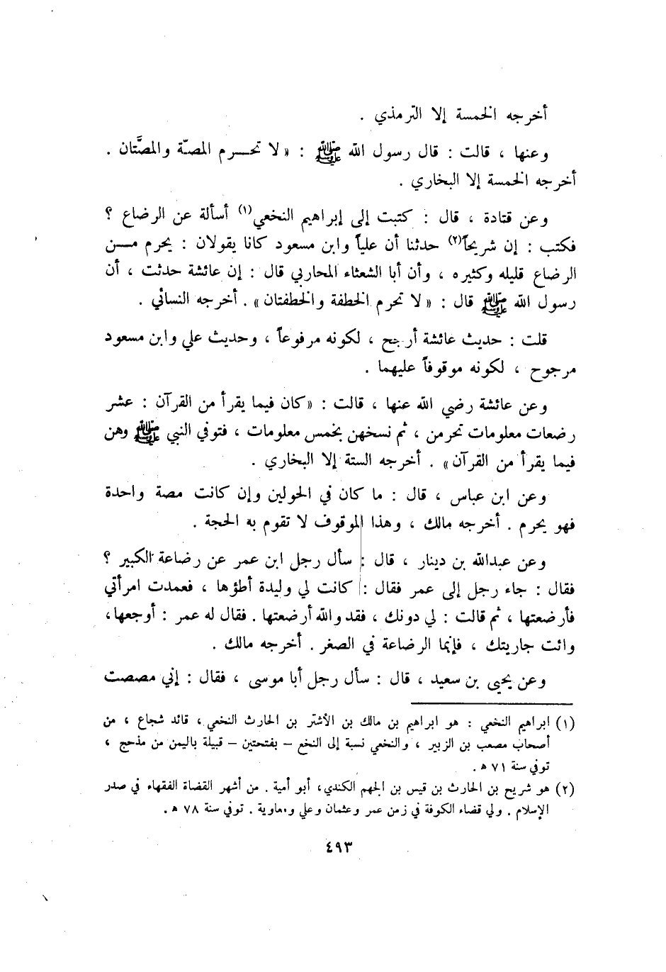وَعَن قَتَادَة قَالَ كتبت إِلَى إِبْرَاهِيم النَّخعِيّ أسأله عَن الرَّضَاع فَكتب إِن شريحا حَدثنَا أَن عليا وَابْن مَسْعُود كَانَا يَقُولَانِ يحرم من الرَّضَاع قَلِيله وَكَثِيره وَأَن أَبَا الشعْثَاء الْمحَاربي قَالَ إِن عَائِشَة حدثت أَن رَسُول الله صلى الله عَلَيْهِ وَسلم قَالَ لَا تحرم الْخَطفَة والخطفتان أخرجه النَّسَائِيّ