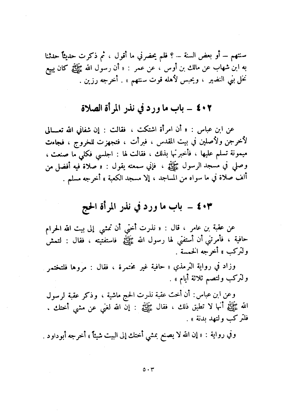 403 - بَاب مَا ورد فِي نذر الْمَرْأَة الْحَج