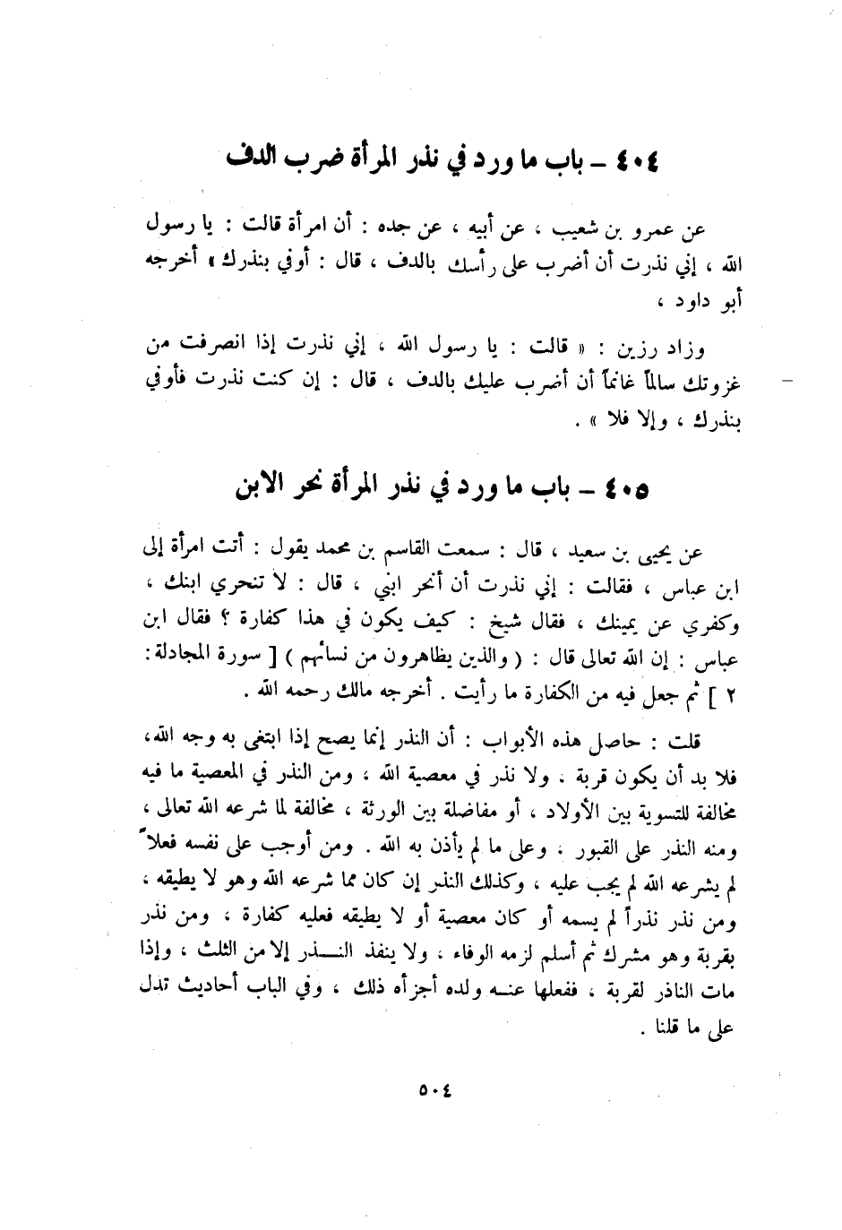 405 - بَاب مَا ورد فِي نذر الْمَرْأَة نَحْو الابْن