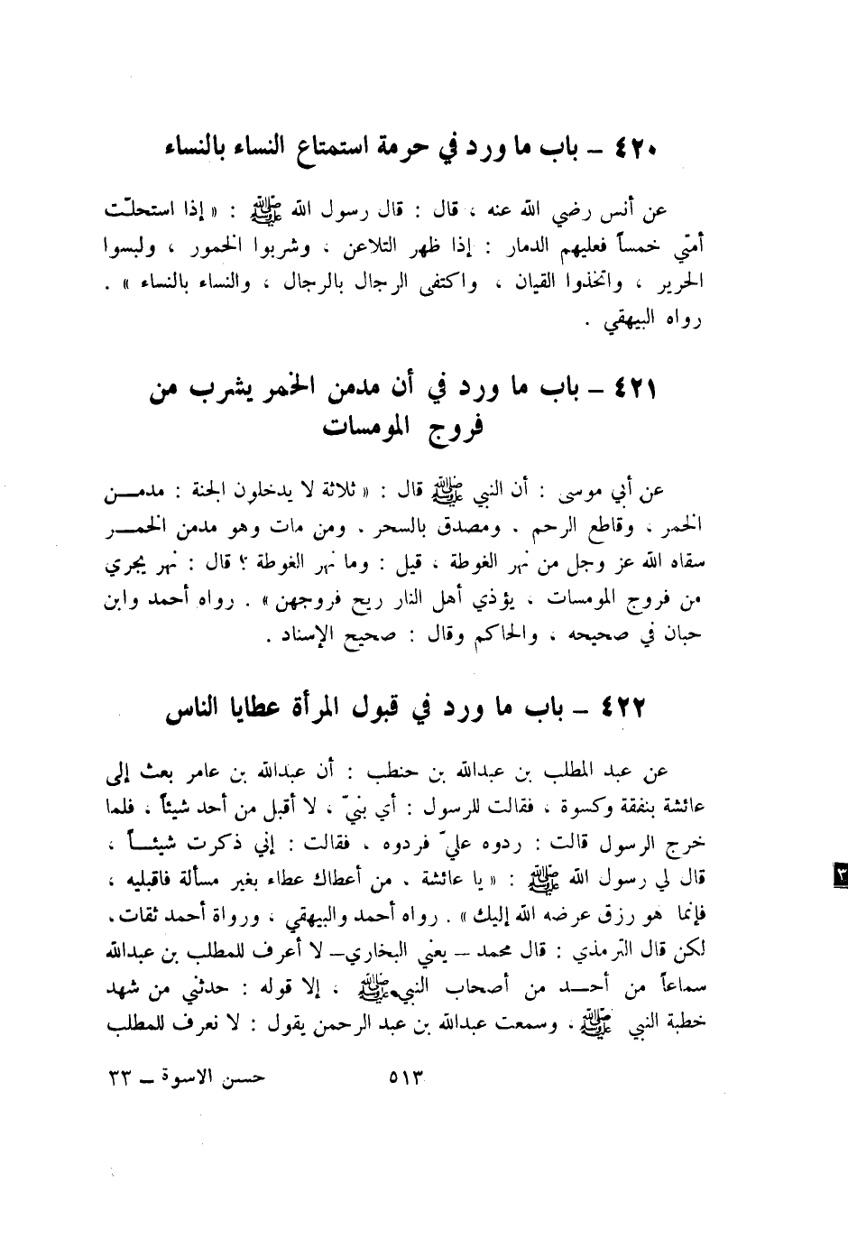 420 - بَاب مَا ورد فِي حُرْمَة استمتاع النِّسَاء بِالنسَاء