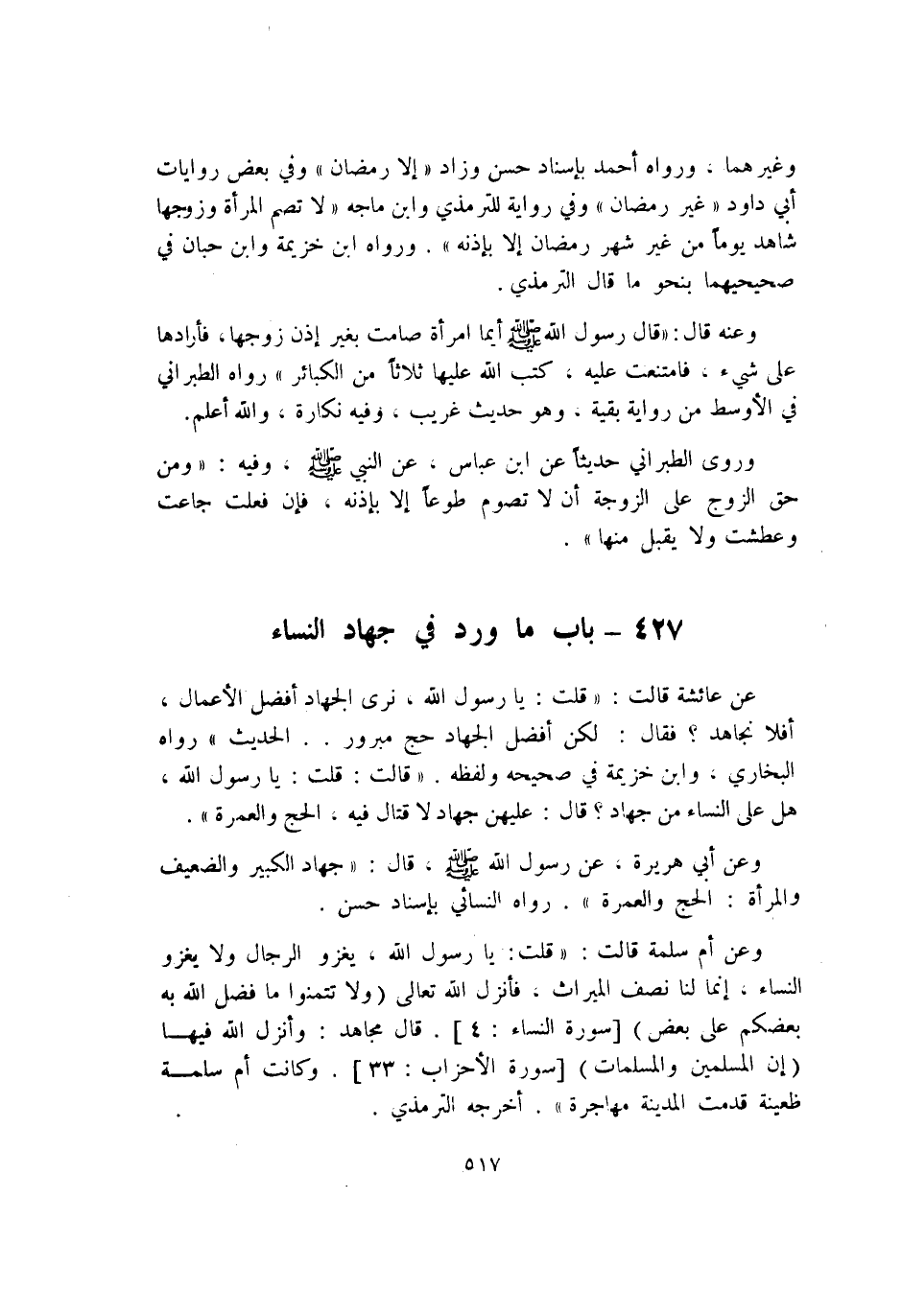 427 - بَاب مَا ورد فِي جِهَاد النِّسَاء