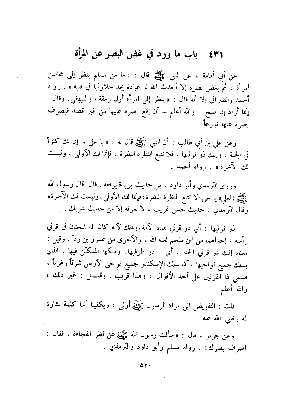 431 - بَاب مَا ورد فِي غض الْبَصَر عَن الْمَرْأَة
