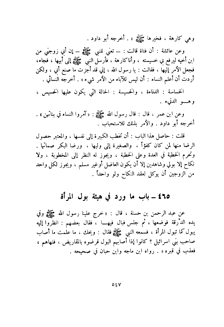 465 - بَاب مَا ورد فِي هَيْئَة بَوْل الْمَرْأَة