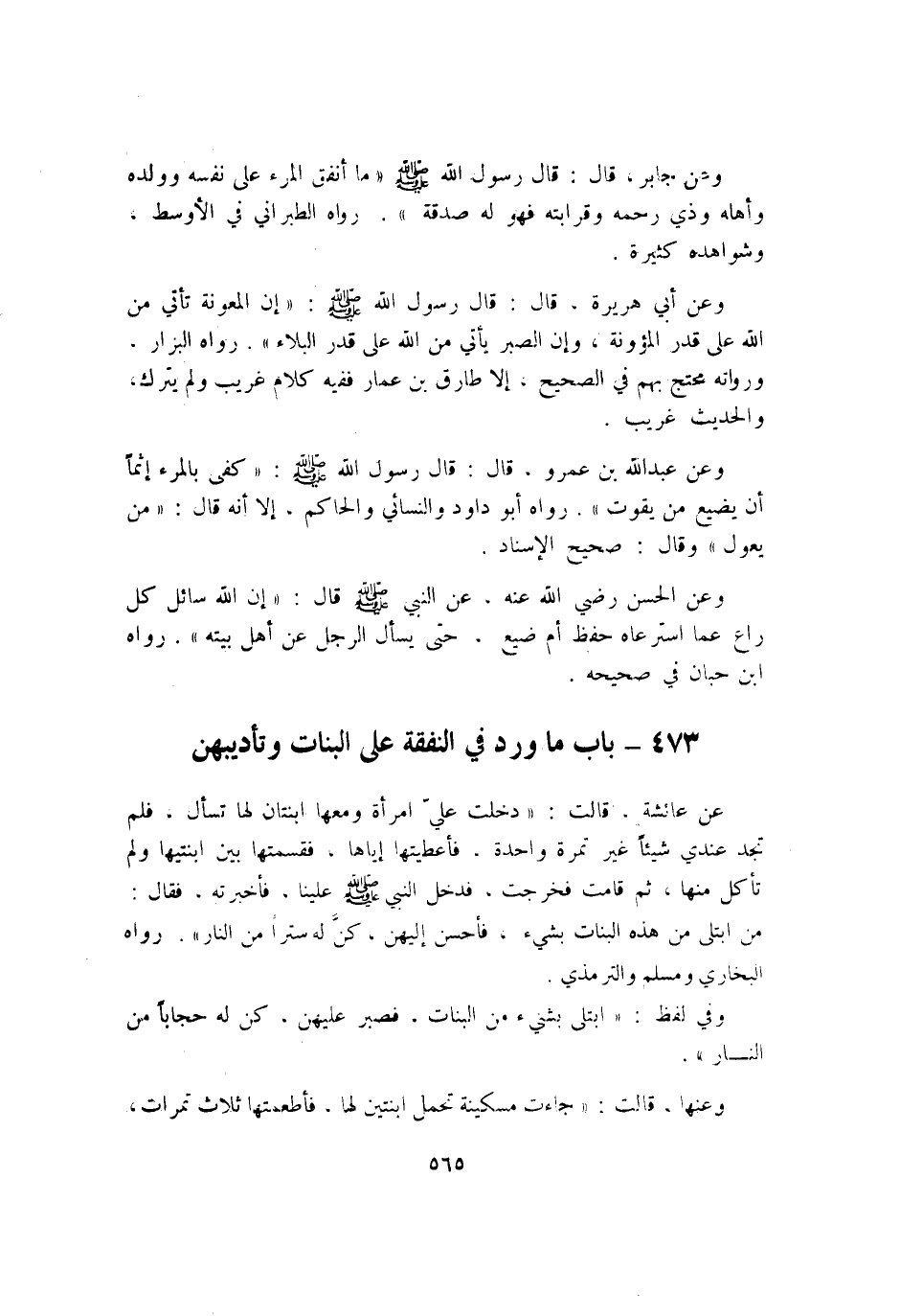 473 - بَاب مَا ورد فِي النَّفَقَة على الْبَنَات وتأديبهن