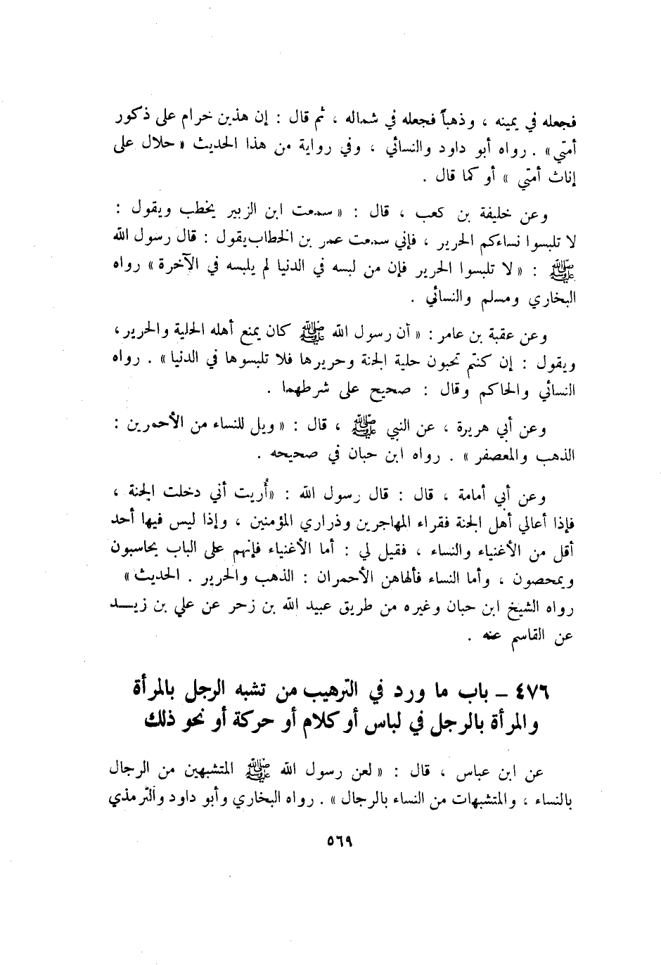 476 - بَاب مَا ورد فِي التَّرْهِيب من تشبه الرجل بِالْمَرْأَةِ الْمَرْأَة بِالرجلِ فِي لِبَاس أَو كَلَام أَو حَرَكَة أَو نَحْو ذَلِك