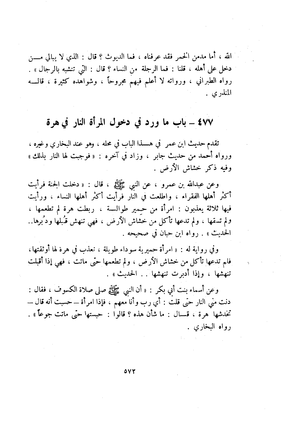 477 - بَاب مَا ورد فِي دُخُول الْمَرْأَة النَّار فِي هرة