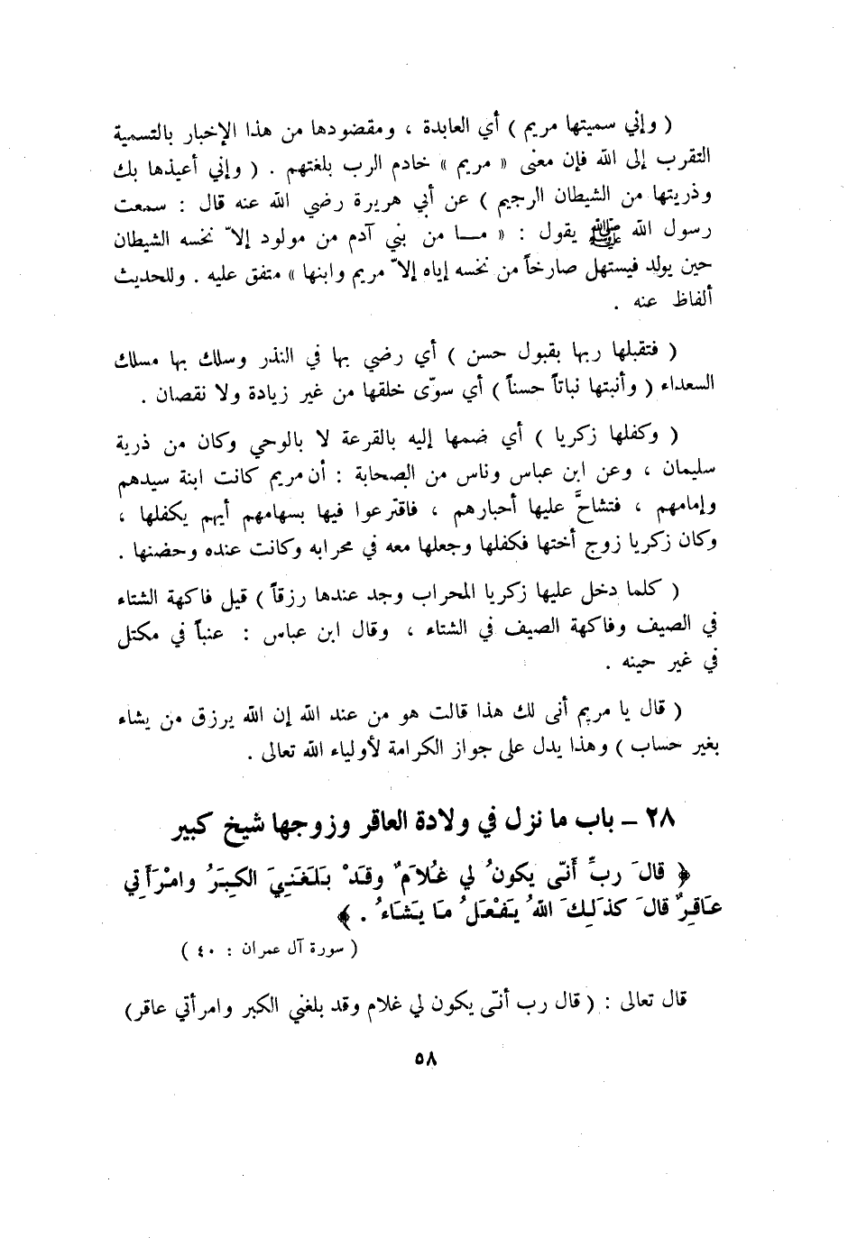 28 - بَاب مَا نزل فِي ولادَة العاقر وَزوجهَا شيخ كَبِير