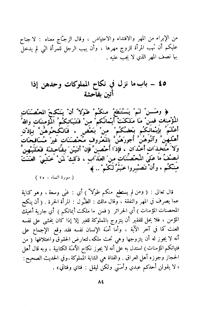 45 - بَاب مَا نزل فِي نِكَاح المملوكات وحدهن إِذا أتين بِفَاحِشَة