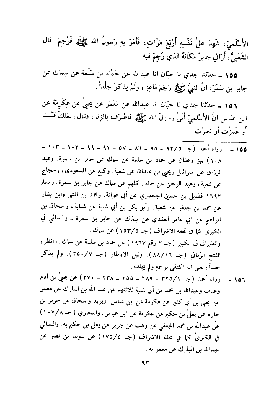 ١٥٥ - حَدَّثَنَا جَدِّي، نَا حِبَّانُ، أَنا عَبْدُ اللَّهِ عَنْ حَمَّادِ بْنِ سَلَمَةَ , عَنْ سِمَاكٍ , عَنْ جَابِرِ بْنِ سَمُرَةَ , أَنَّ النَّبِيَّ صَلَّى اللَّهُ عَلَيْهِ وَسَلَّمَ «رَجَمَ مَاعِزًا» , وَلَمْ يَذْكُرْ جَلْدًا