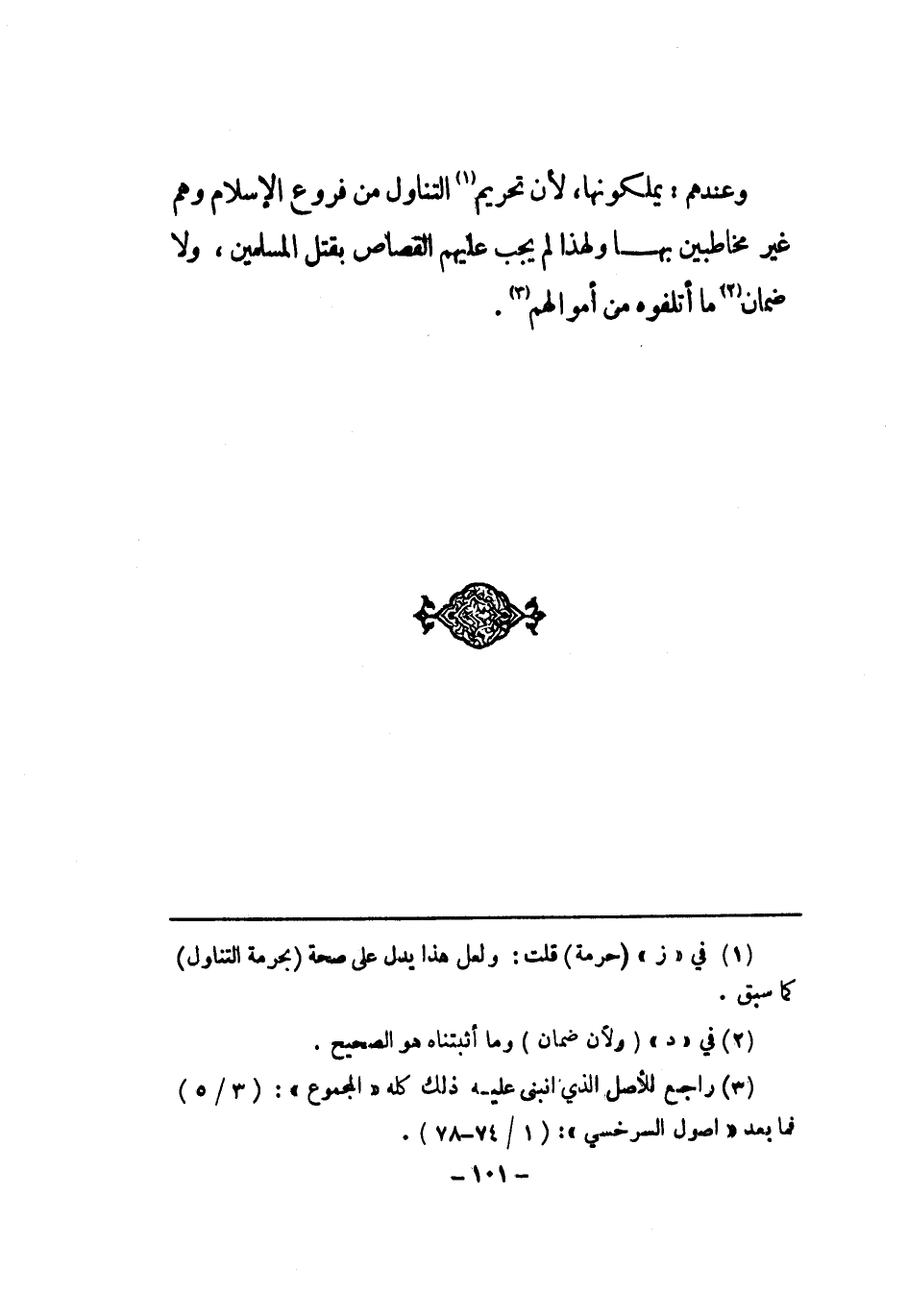 وَعِنْدهم يملكونها لِأَن تَحْرِيم التَّنَاوُل من فروع الْإِسْلَام وهم غير مخاطبين بهَا وَلِهَذَا لم يجب عَلَيْهِم الْقصاص بقتل الْمُسلمين وَلَا ضَمَان مَا أتلفوه من أَمْوَالهم