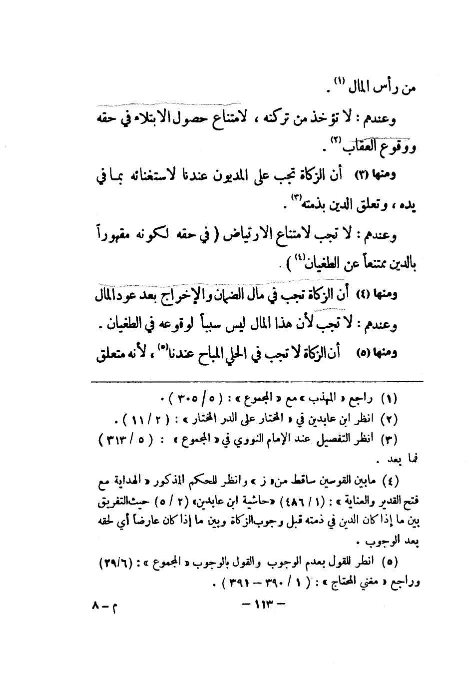وَمِنْهَا إِن الزَّكَاة تجب على الْمَدْيُون عندنَا لاستغنائه بِمَا فِي يَده وَتعلق الدّين بِذِمَّتِهِ