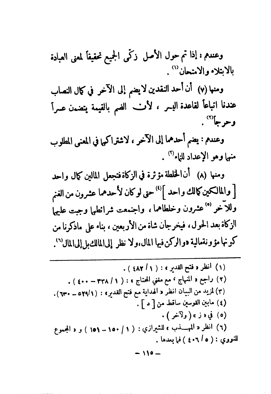 وَمِنْهَا أَن الْخلطَة مُؤثرَة فِي الزَّكَاة فتجعل الْمَالَيْنِ كَمَال وَاحِد والمالكين كمالك وَاحِد حَتَّى لَو كَانَ لأَحَدهمَا عشرُون من الْغنم وَللْآخر عشرُون وخلطاهما وَاجْتمعت شرائطهما وَجَبت عَلَيْهِمَا الزَّكَاة بعد الْحول فيخرجان شَاة من الْأَرْبَعين بِنَاء على مَا ذكرنَا من كَونهَا مؤونة مَالِيَّة والركن فِيهَا المَال وَلَا نظر إِلَى الْمَالِك بل إِلَى المَال