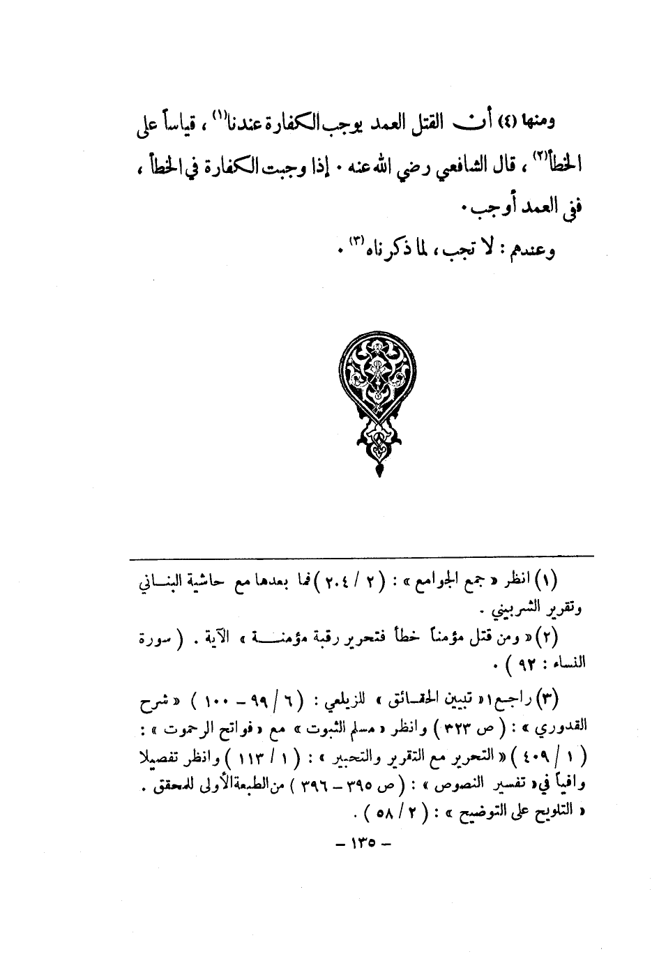 وَمِنْهَا أَن الْقَتْل الْعمد يُوجب الْكَفَّارَة عندنَا قِيَاسا على الْخَطَأ قَالَ الشَّافِعِي رض إِذا وَجَبت الْكَفَّارَة فِي الْخَطَأ فَفِي الْعمد أوجب