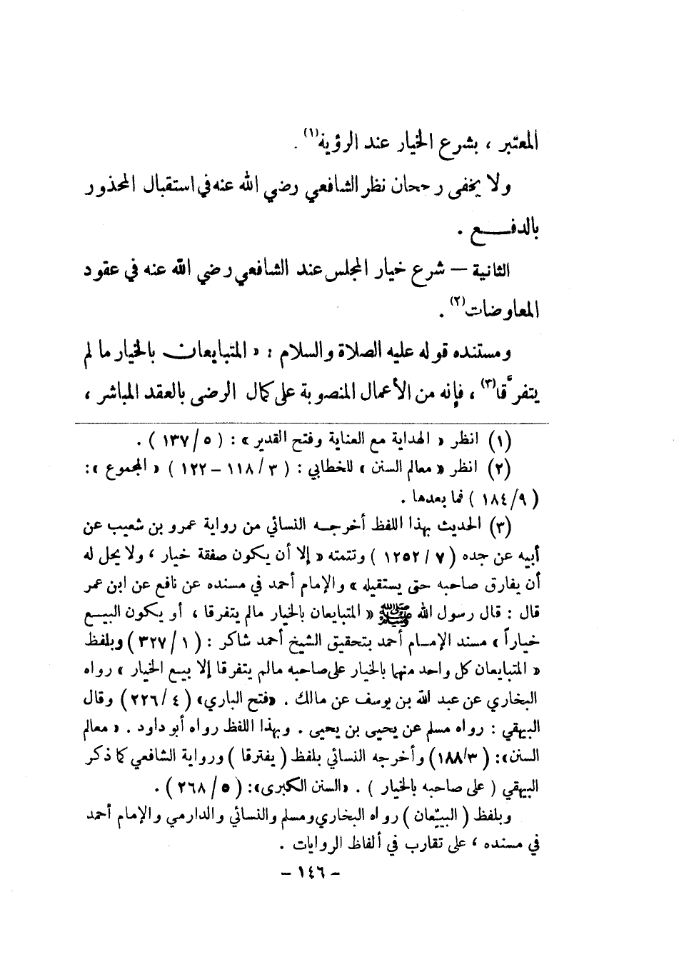 الثَّانِيَة شرع خِيَار الْمجْلس عِنْد الشَّافِعِي رض فِي عُقُود الْمُعَاوَضَات