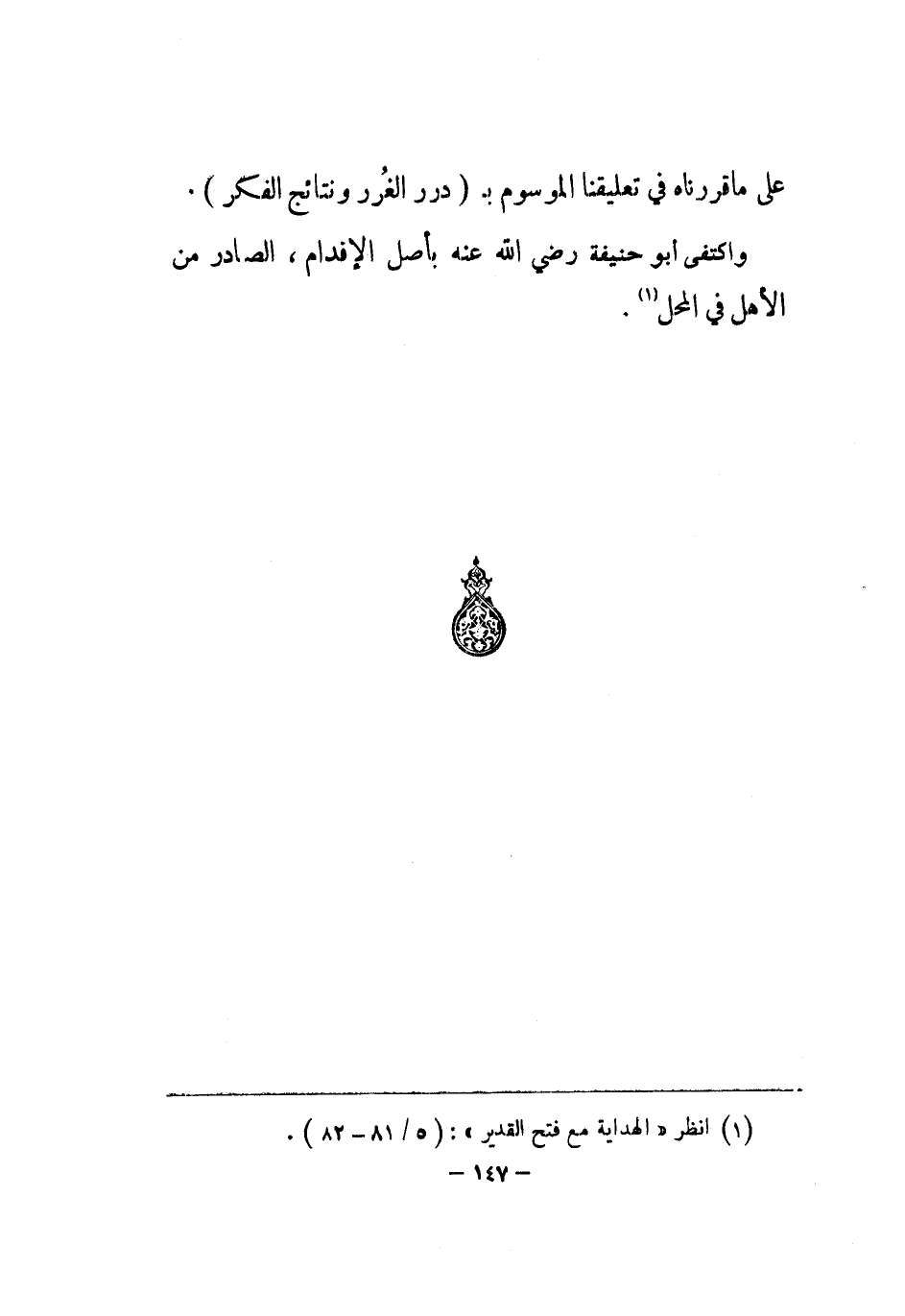 وَاكْتفى أَبُو حنيفَة رض بِأَصْل الْإِقْدَام الصَّادِر من الْأَهْل فِي الْمحل