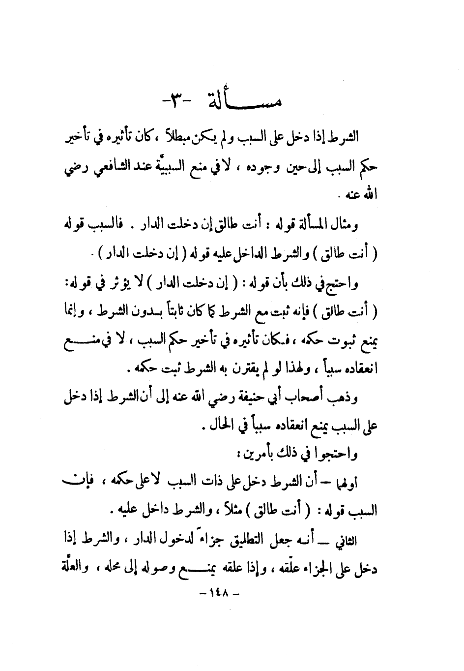 وَمِثَال الْمَسْأَلَة قَوْله أَنْت طَالِق إِن دخلت الدَّار فالسبب قَوْله أَنْت طَالِق وَالشّرط الدَّاخِل عَلَيْهِ قَوْله إِن دخلت الدَّار